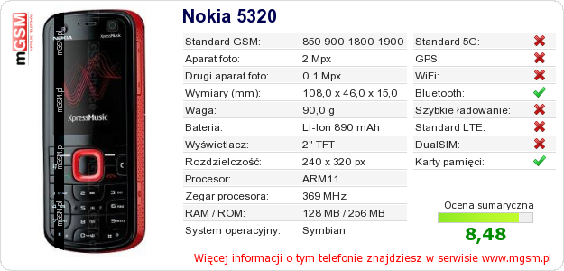Dane telefonu Nokia 5320 na Twojej stronie