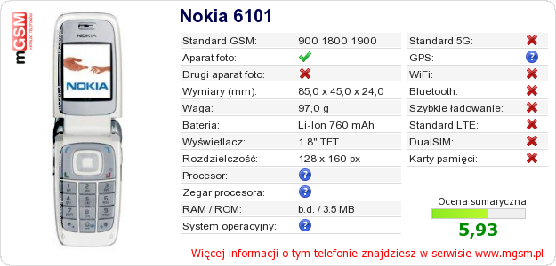 Dane telefonu Nokia 6101 na Twojej stronie