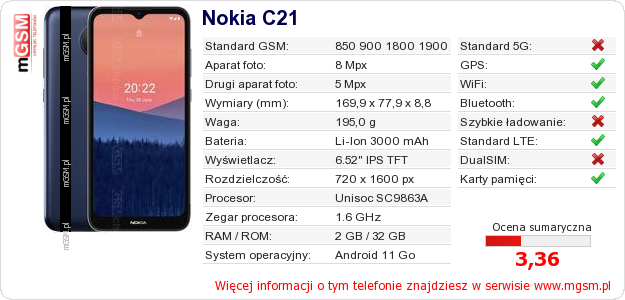 Dane telefonu Nokia C21 na Twojej stronie