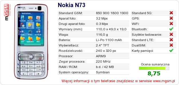 Dane telefonu Nokia N73 na Twojej stronie