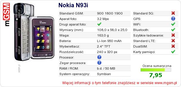 Dane telefonu Nokia N93i na Twojej stronie