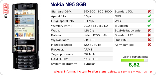 Dane telefonu Nokia N95 8GB na Twojej stronie