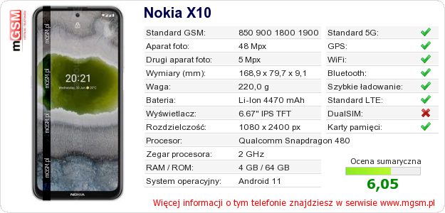 Dane telefonu Nokia X10 na Twojej stronie