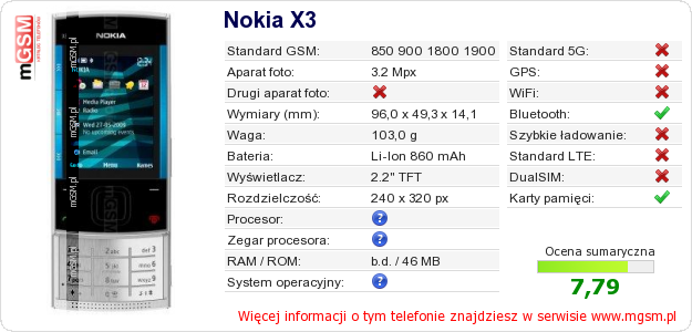 Dane telefonu Nokia X3 na Twojej stronie