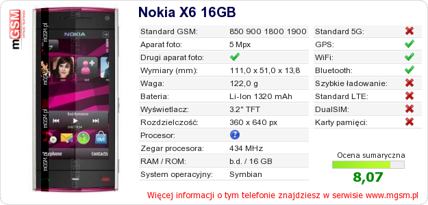 Dane telefonu Nokia X6 16GB na Twojej stronie