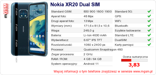 Dane telefonu Nokia XR20 Dual SIM na Twojej stronie