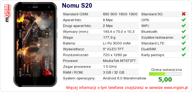 Dane telefonu Nomu S20 na Twojej stronie
