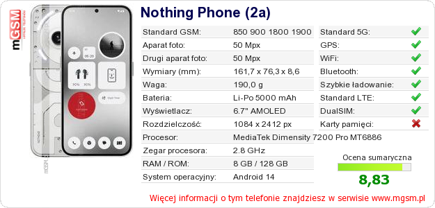 Dane telefonu Nothing Phone (2a) na Twojej stronie