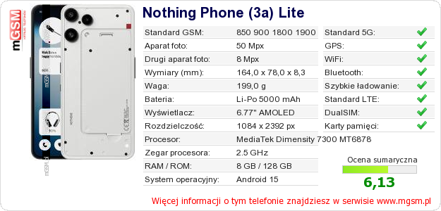 Dane telefonu Nothing Phone (3a) Lite na Twojej stronie