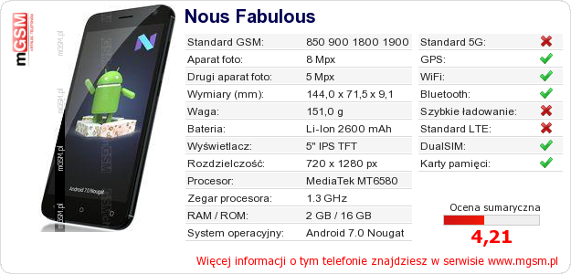 Dane telefonu Nous Fabulous na Twojej stronie