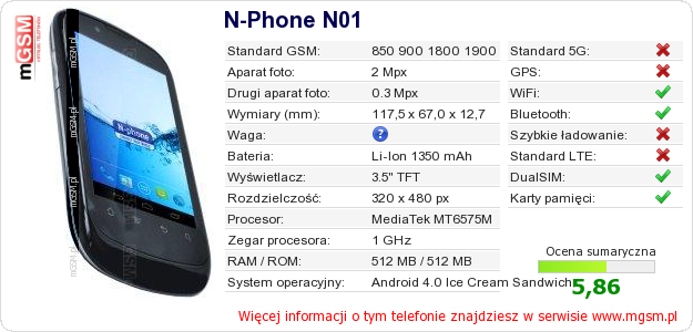 Dane telefonu N-Phone N01 na Twojej stronie