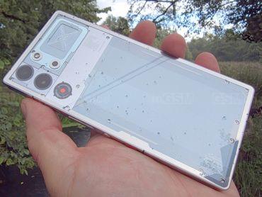 W dziedzinie designu Nubia naprawdę daje radę. To smartfon zaprojektowany na piątkę. Jest duży, dosyć ciężki, ma raczej kanciasty kształt, ale dzięki temu wygląda unikalnie i wyjątkowo. W jasnej wersji kolorystycznej prezentuje się wręcz spektakularnie – elegancko, futurystycznie i nowocześnie. Obudowa urządzenia została wykonana z wysokiej jakości materiałów – ramka jest metalowa, a tylny panel imituje wnętrzności telefonu, co podkreśla nowoczesny charakter. Obudowa cechuje się dużą wytrzymałością, a jej konstrukcja została zaprojektowana z myślą o ochronie podzespołów. Znajdziemy tu specjalne wloty chłodzenia, które poprawiają odprowadzanie ciepła podczas intensywnego użytkowania. Warto zaznaczyć, że obudowa dostępna jest w różnych wariantach wykończenia, co pozwala dopasować wygląd smartfona do własnych preferencji. Z przodu znajduje się efektowny wyświetlacz z imponująco wąskimi ramkami. Wykonanie stoi na poziomie klasy premium. Niestety, telefon nie jest w pełni wodoszczelny – przez obecność otworów chłodzących jego odporność ogranicza się do IP54.