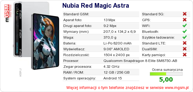Dane telefonu Nubia Red Magic Astra na Twojej stronie