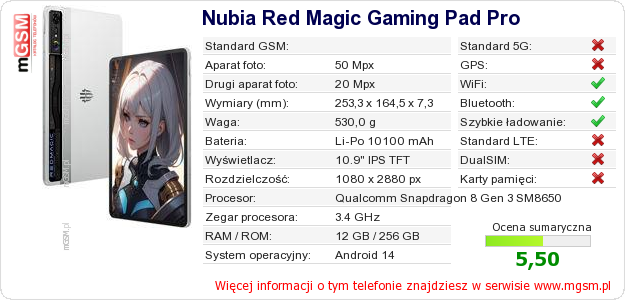 Dane telefonu Nubia Red Magic Gaming Pad Pro na Twojej stronie