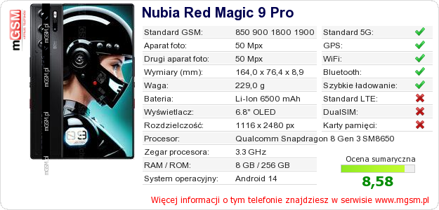 Dane telefonu Nubia Red Magic 9 Pro na Twojej stronie
