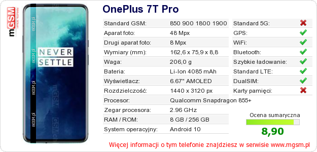 Dane telefonu OnePlus 7T Pro na Twojej stronie
