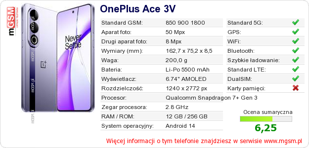 Dane telefonu OnePlus Ace 3V na Twojej stronie