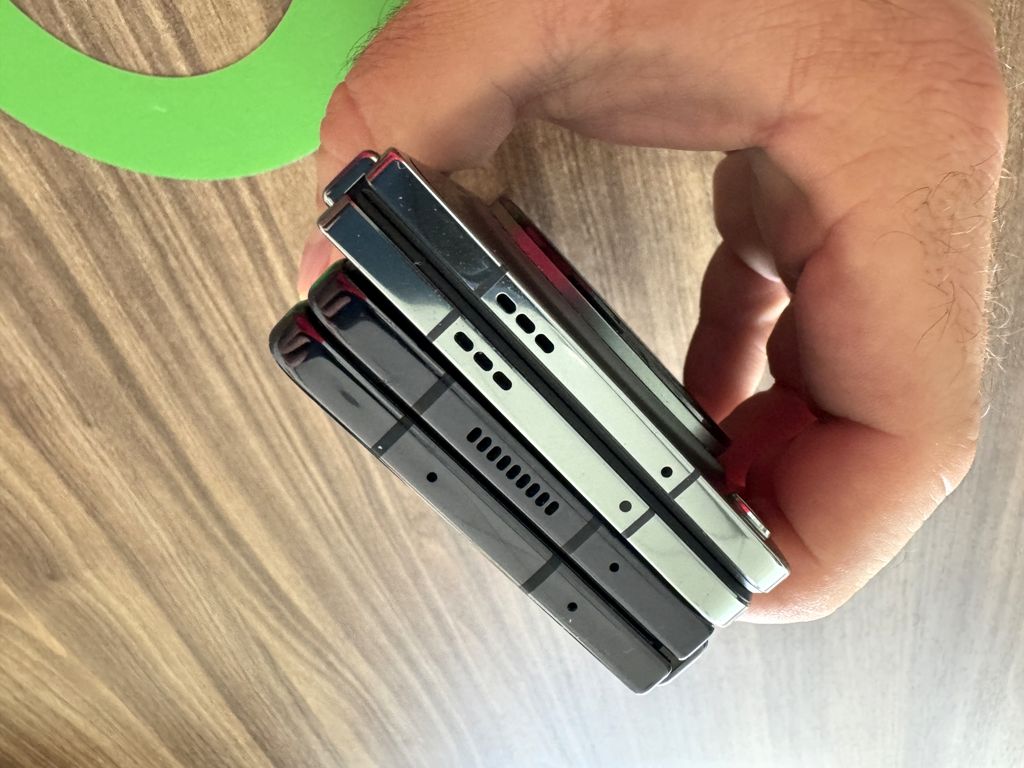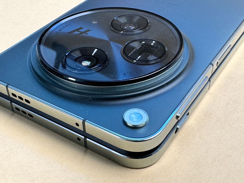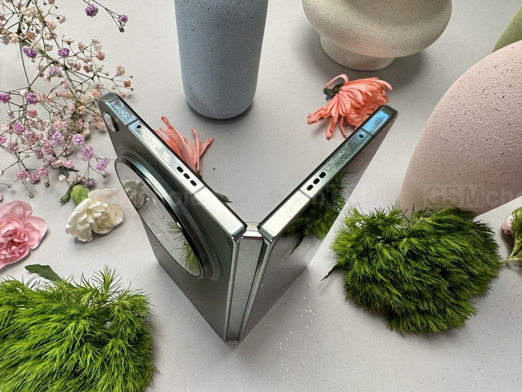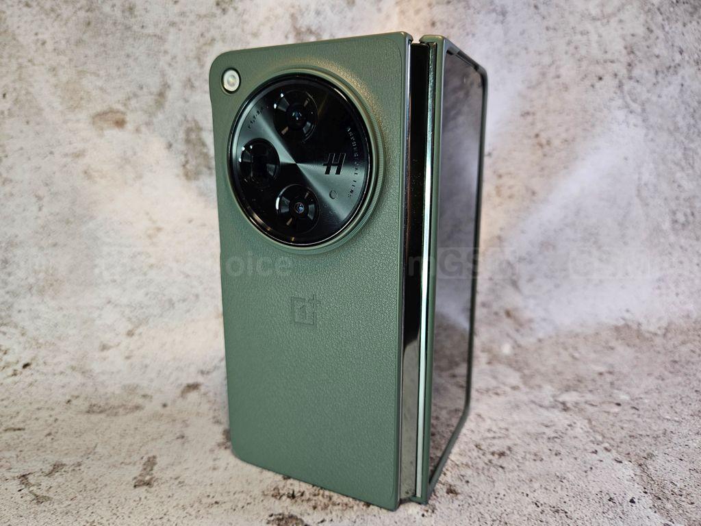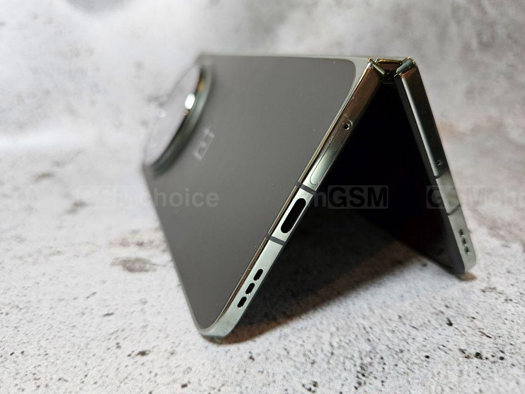 Co ważne, jakość wykonania jest znakomita, typowa dla flagowego modelu. Zawias pracuje bardzo ładnie, z delikatnym oporem, co dodaje poczucia solidności. Niestety brakuje pełnej wodoszczelności, co jest pewnym mankamentem, zwłaszcza w porównaniu z koreańskim producentem. Warto zwrócić uwagę na kilka rzeczy specyficznych dla tego rodzaju konstrukcji. OnePlus ma coś, co także ma jego konkurent, a mianowicie płaskie boki, czego ja osobiście nie lubię. Jest tak głównie dlatego, że trudniej włożyć palec między połówki obudowy, żeby ją otworzyć jedną dłonią. Przy zaokrąglonych bokach ten problem nie występuje.