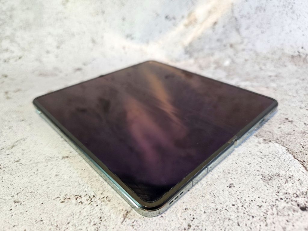 Następną rzeczą, której producent chwali się, a która prawdopodobnie wpływa na trwałość tego telefonu, jest szkło osłaniające zewnętrzny wyświetlacz. Według obietnic producenta ma ono być o 20% wytrzymalsze od popularnego konkurenta. Osobiście wolałbym nie testować tego osobiście, ale jeśli rzeczywiście tak jest, to można się tylko cieszyć, prawda? Co do parametrów, zewnętrzny wyświetlacz ma przekątną 6,31 cala i rozdzielczość 2484 x 1116 pikseli, czyli całkiem dobrze. Natomiast wewnętrzny ekran ma 7,82 cala przy rozdzielczości 2440 x 2268 pikseli, co również jest całkiem przyjemne.