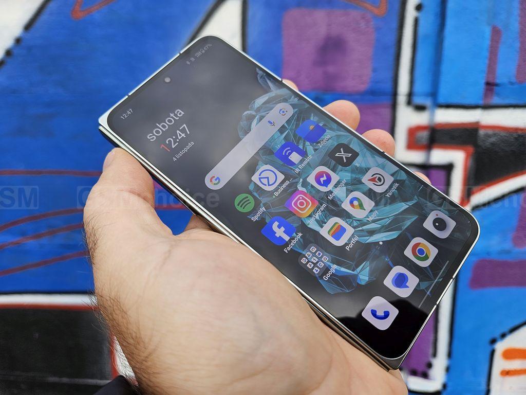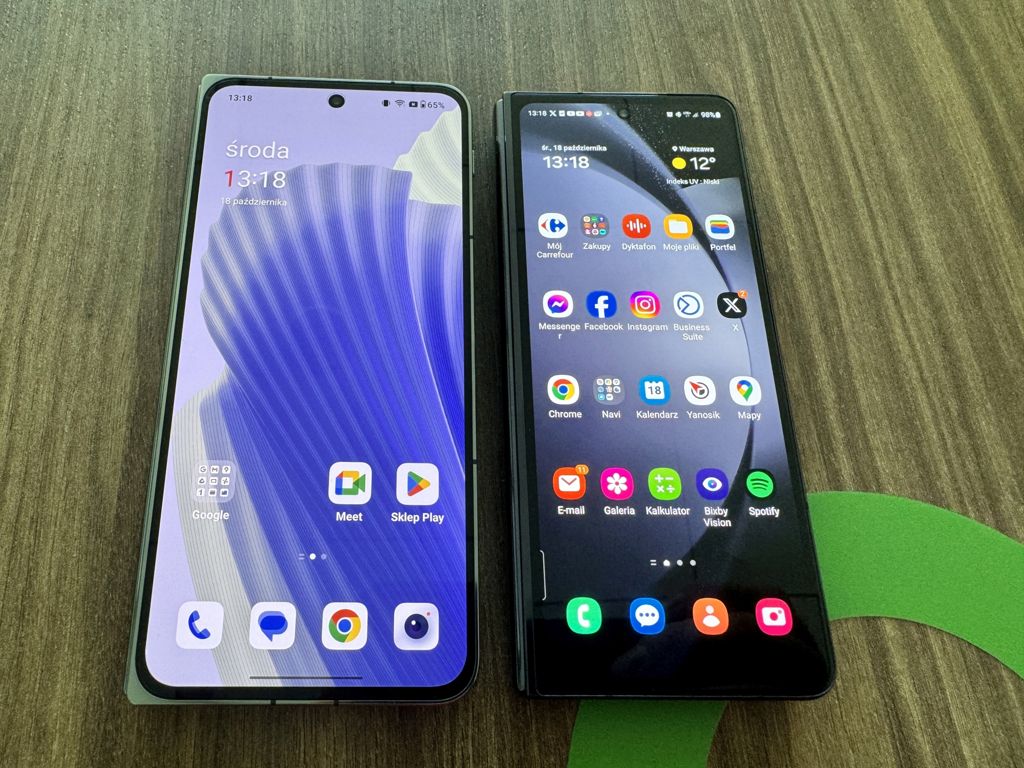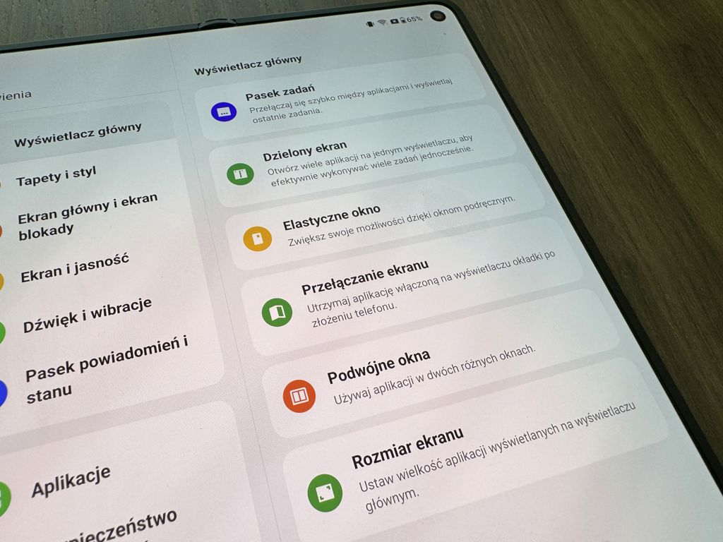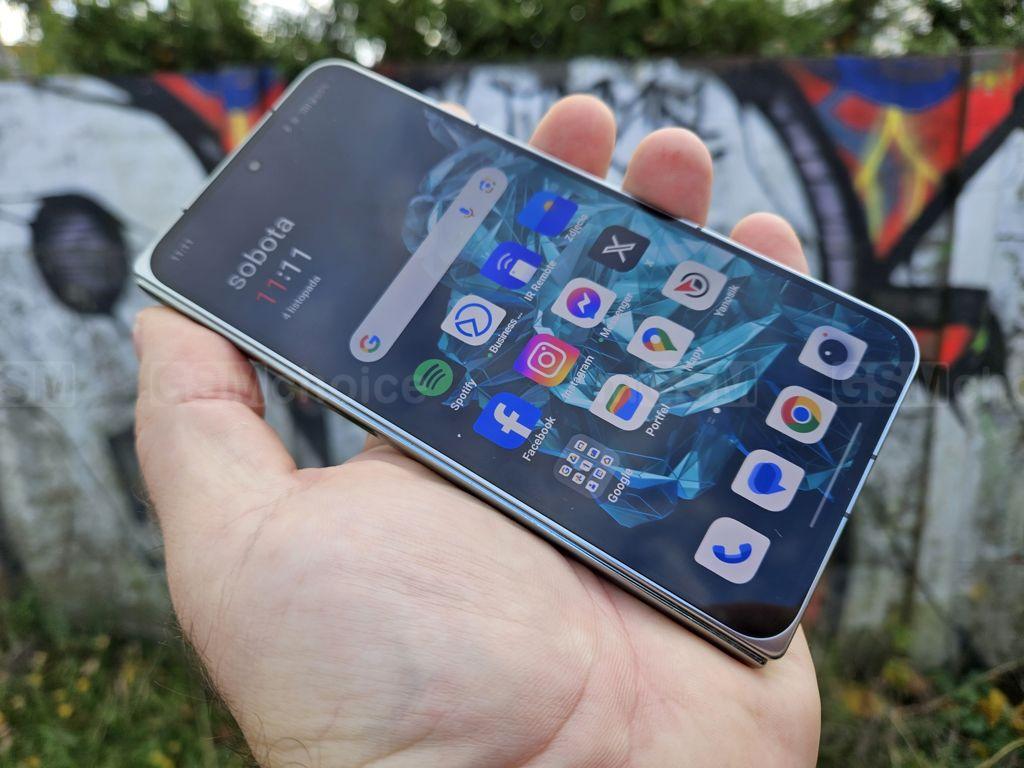 Ważnym elementem tego modelu jest bardzo dobrze wykonany wyświetlacz. Ekrany odznaczają się wysoką jasnością, co umożliwia korzystanie z telefonu na zewnątrz, nawet w słoneczny dzień, co jest dla mnie szalenie istotne. Szybkie odświeżanie i piękna paleta kolorów dodatkowo podnoszą jakość wyświetlaczy. Proporcje zewnętrznego ekranu są podobne do standardowego smartfona, co ułatwia wprowadzanie tekstu, zwłaszcza w porównaniu z konkurencyjnym modelem od Samsunga, który ma ten ekran węższy, ale wyższy.