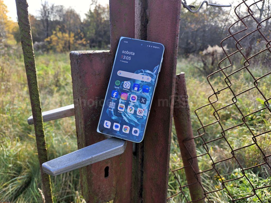 Pewnie zastanawiacie się, czy widać fałdę na składanymm ekranie. Owszem, jest ona widoczna, ale jest zdecydowanie mniej zauważalna i mniej uciążliwa pod palcem niż u znanych i popularnych konkurentów. To również bardzo mi się spodobało. Jednak z drugiej strony, wyświetlacz traci na wyglądzie z powodu otworu na aparat do selfie, który w Foldzie Samsunga jest zamaskowany na tyle, że go niemal nie widać. Tutaj, z drugiej strony, mamy pełnoprawny aparat, który pozwala robić przyzwoitej jakości zdjęcia, nie obarczone wadami typowymi dla aparatów ukrytych pod ekranem.