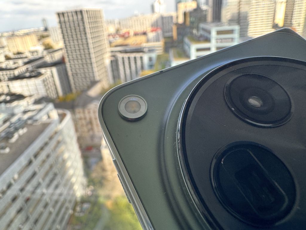 Przechodząc do aparatów, zauważyłem, że aparat wewnętrzny, mimo posiadania zaledwie 20 megapikseli, jest lepszy niż w składanym Samsungu. Przewiduje, że będzie głównie używany do wideo połączeń, umożliwiając wygodne uczestniczenie w spotkaniach z wolnymi rękami.