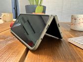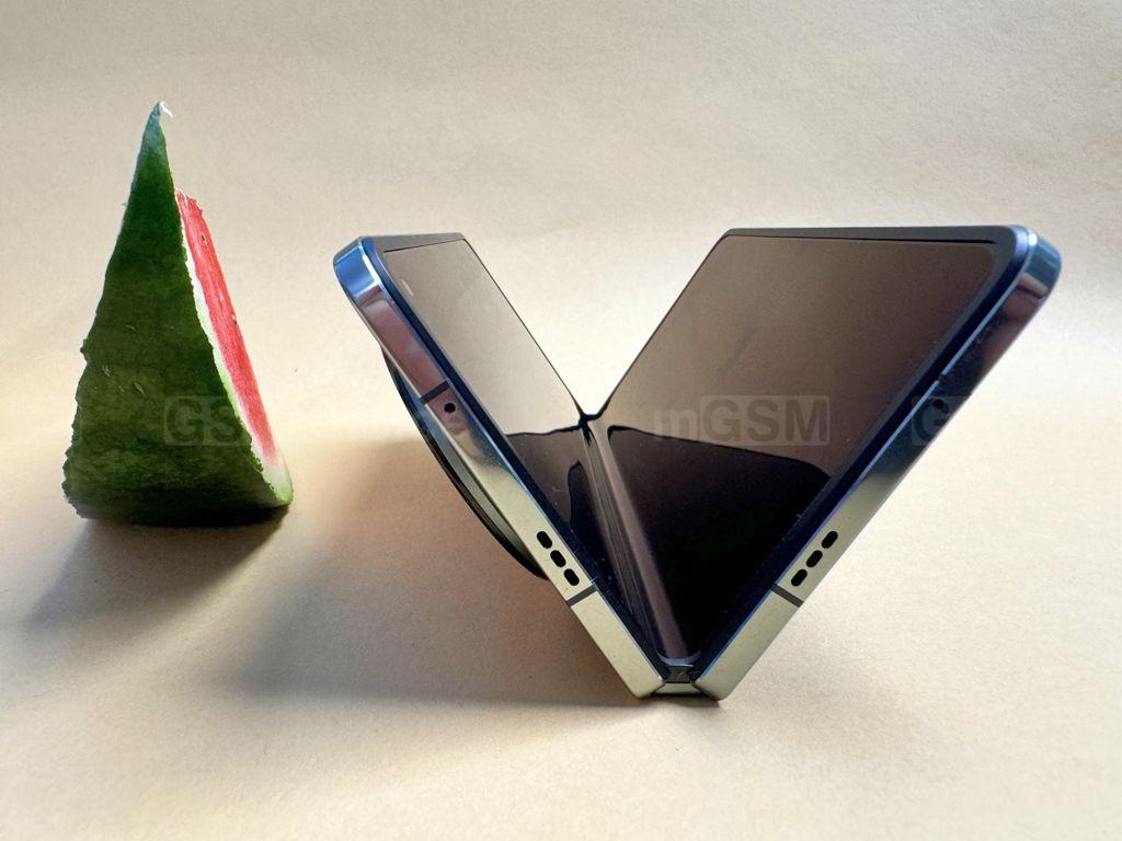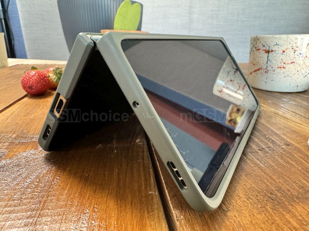 Kolejną rzeczą specyficzną dla tego rodzaju otwieranych urządzeń jest możliwość ustawienia telefonu w formie mini laptopa, korzystając z klawiatury na dolnej połówce ekranu, podczas gdy górna część ekranu pozostaje widoczna. Na przykład, możemy postawić telefon tak, aby stanowił rodzaj namiotu, umożliwiając oglądanie treści na zewnętrznym ekranie, gdy telefon spoczywa na płaskiej powierzchni. Dodatkowo, telefon może pełnić rolę swojego własnego statywu fotograficznego, co ułatwia robienie zdjęć, szczególnie nocnych.