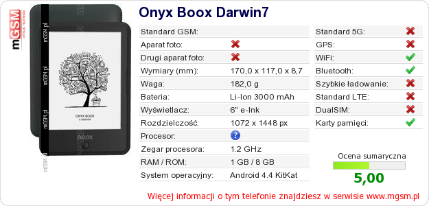 Dane telefonu Onyx Boox Darwin7 na Twojej stronie