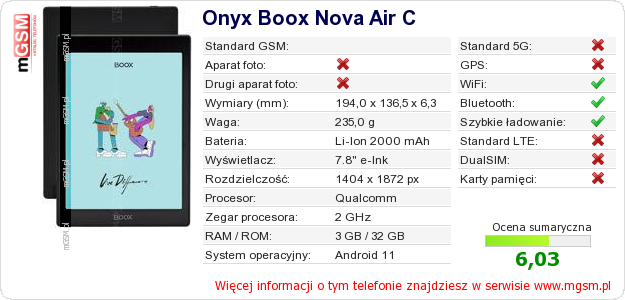 Dane telefonu Onyx Boox Nova Air C na Twojej stronie