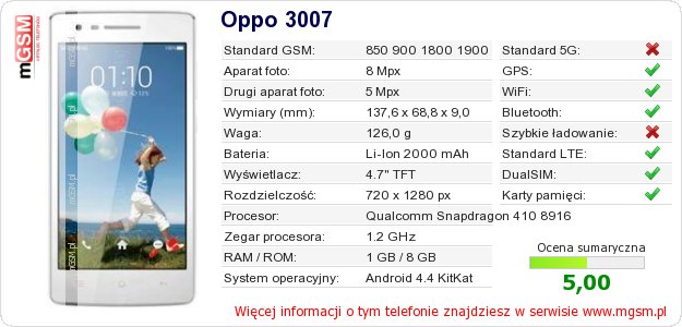 Dane telefonu Oppo 3007 na Twojej stronie