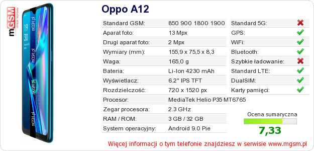 Dane telefonu Oppo A12 na Twojej stronie