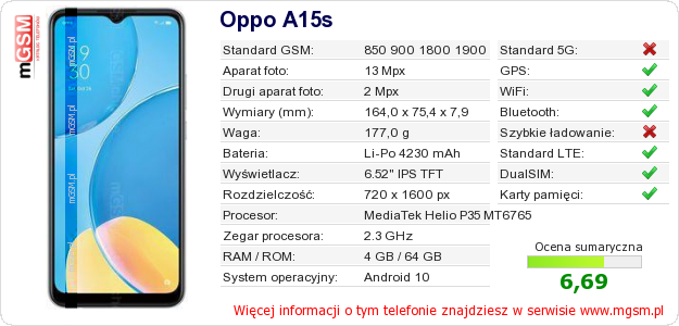 Dane telefonu Oppo A15s na Twojej stronie