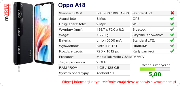 Dane telefonu Oppo A18 na Twojej stronie