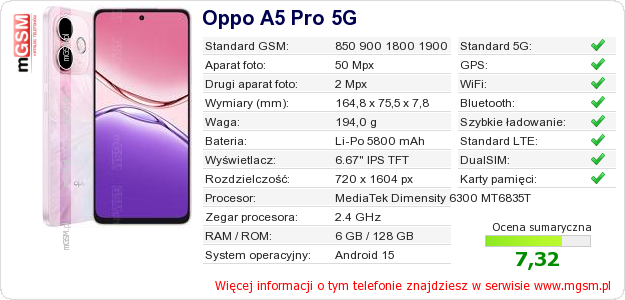 Dane telefonu Oppo A5 Pro 5G na Twojej stronie