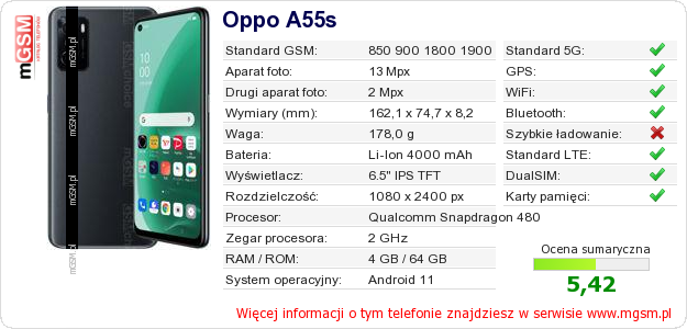 Dane telefonu Oppo A55s na Twojej stronie