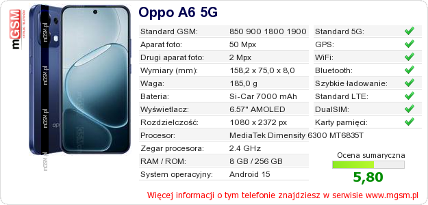 Dane telefonu Oppo A6 5G na Twojej stronie