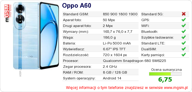 Dane telefonu Oppo A60 na Twojej stronie