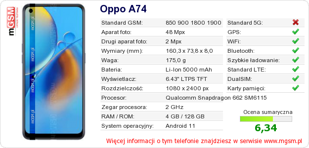 Dane telefonu Oppo A74 na Twojej stronie