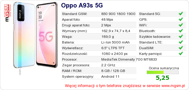 Dane telefonu Oppo A93s 5G na Twojej stronie