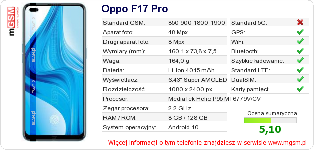 Dane telefonu Oppo F17 Pro na Twojej stronie