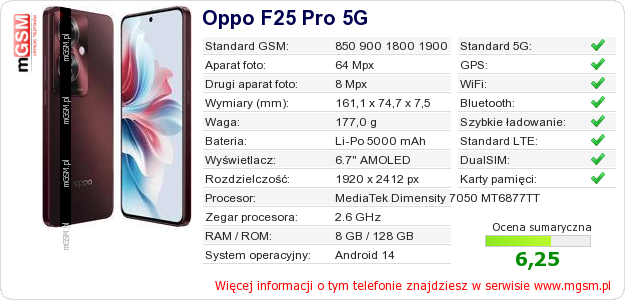 Dane telefonu Oppo F25 Pro 5G na Twojej stronie