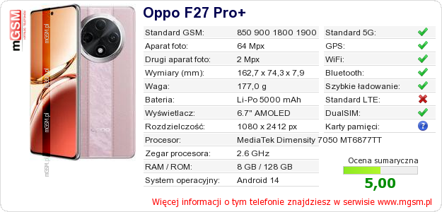 Dane telefonu Oppo F27 Pro+ na Twojej stronie
