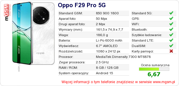 Dane telefonu Oppo F29 Pro 5G na Twojej stronie