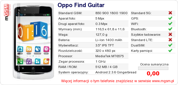 Dane telefonu Oppo Find Guitar na Twojej stronie