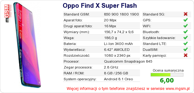 Dane telefonu Oppo Find X Super Flash na Twojej stronie