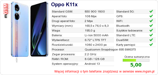 Dane telefonu Oppo K11x na Twojej stronie