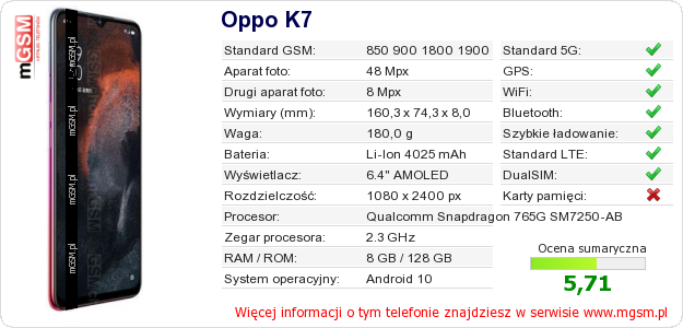 Dane telefonu Oppo K7 na Twojej stronie