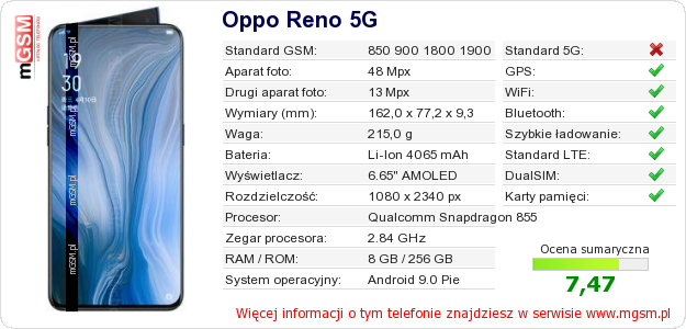 Dane telefonu Oppo Reno 5G na Twojej stronie