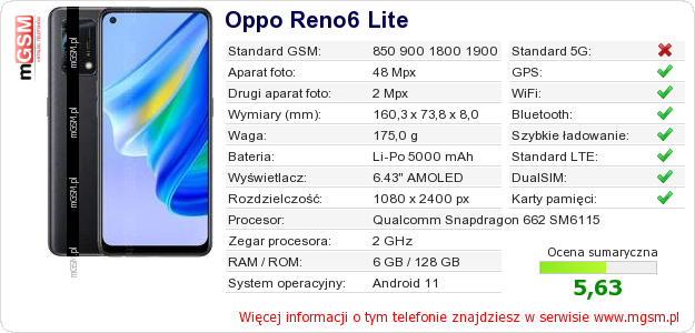 Dane telefonu Oppo Reno6 Lite na Twojej stronie
