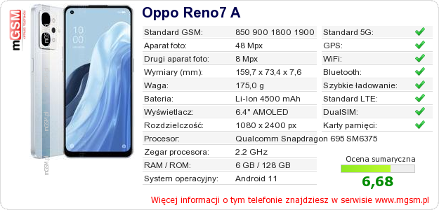Dane telefonu Oppo Reno7 A na Twojej stronie